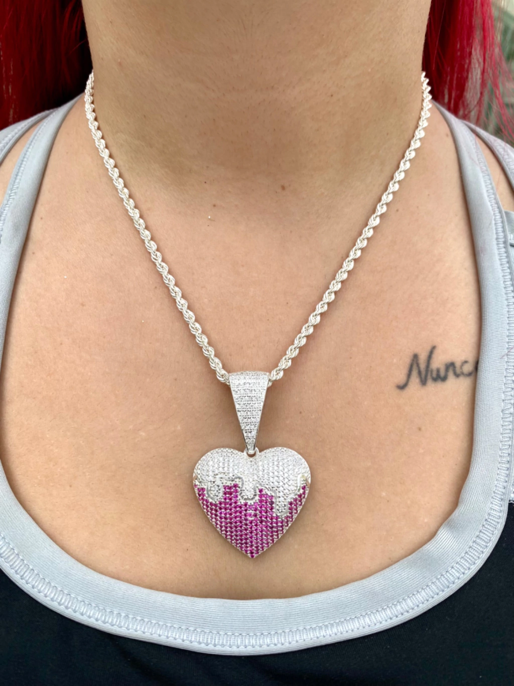 Corrente modelo baiano com 45 centímetros de comprimento.pingente coração gelado foi cravejado com micro pedras de zircônia na técnica de cravação manual micro pavê.