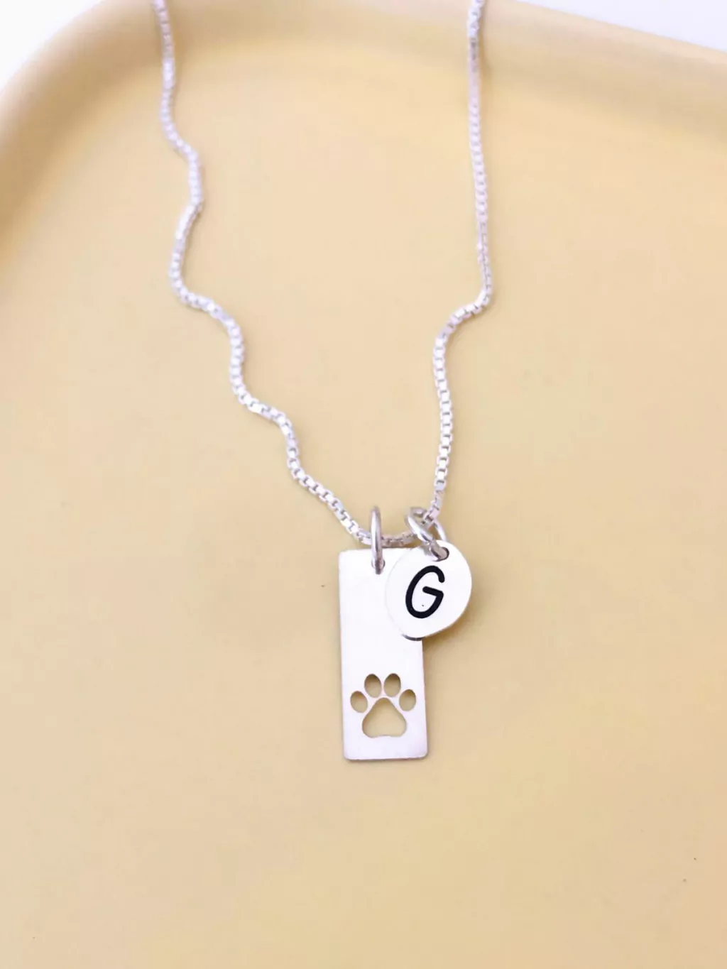 Colar Plaquinha Patinha Vazada + medalhinha com Inicial - Prata 925