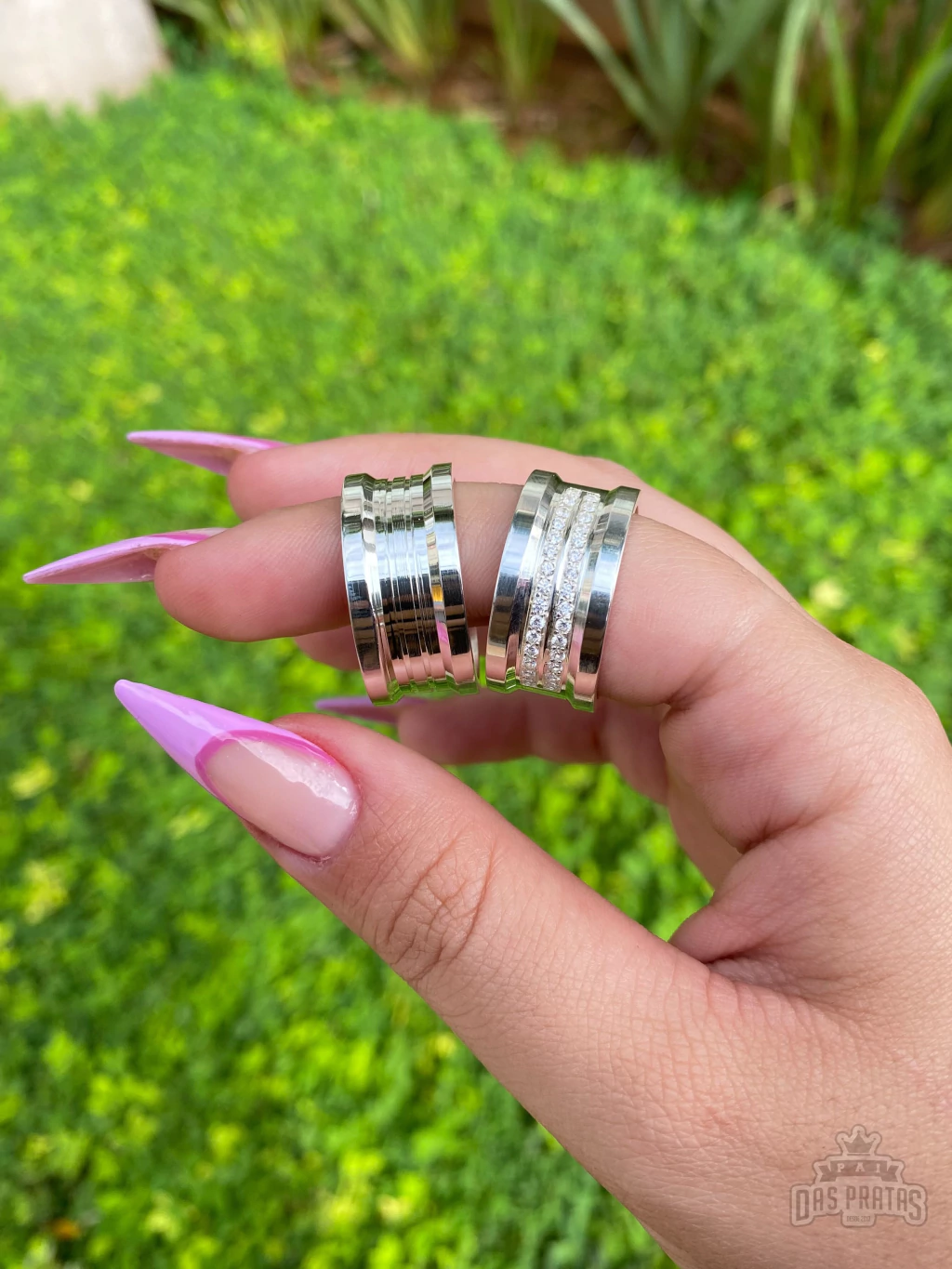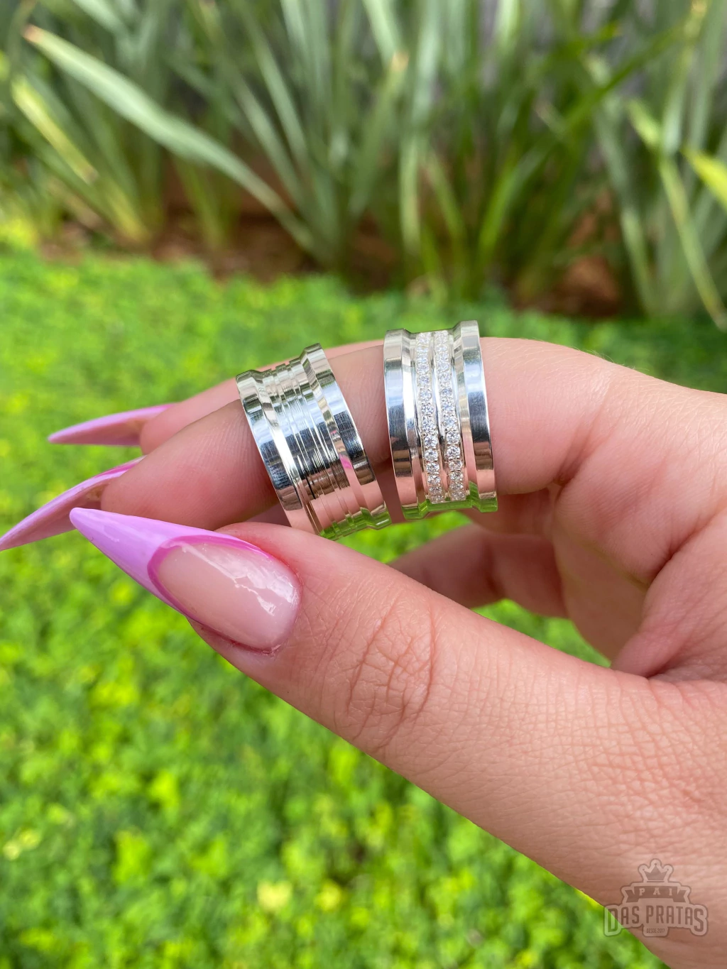 Aliança feminina cravejada até a metade com pedras de zircônias