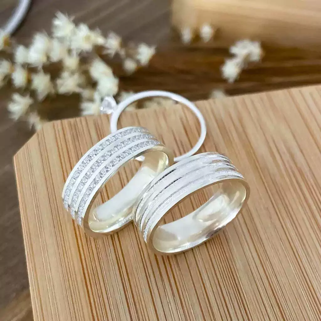 Par de alianças com 8 milímetros + anel solitário acompanha caixinha + gravações <3