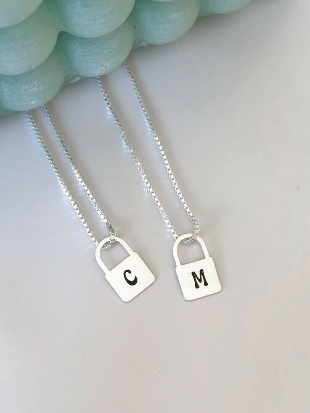 Par de Colares Personalizados Cadeados Love + Inicial - Prata 925